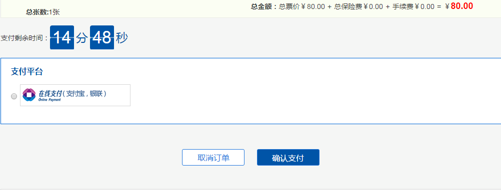 点击【确认支付】按钮后,页面会自动跳转至银行支付页面或第三方支付登录页。请及时支付,如未在规定的时间内完成支付,该订单将自动取消,因此导致的购票不成功,广西道路客运联网售票官网将不承担责任且不收取任何手续费。